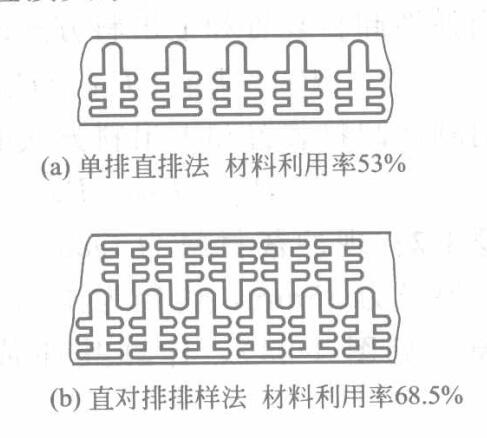 沖床在鋼帶或者鋼板上的布置方法叫做沖壓排樣。如果排樣設(shè)計(jì)的不合理就會(huì)造成材料的浪費(fèi)。確定排樣是否合理主要是參考材料的利用率,也就是工件的實(shí)際面具于材料面具的百分比。